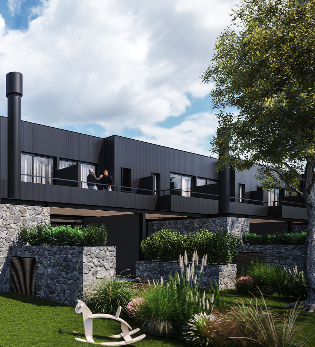 50 casas que proponen un equilibrio entre el edificio y la vivienda particular, buscando las ventajas de ambas tipologías. La comodidad de un conjunto con servicios y el sentido de pertenencia de una casa propia. Un proyecto que apunta a establecer un modo de vida distinto y a convertirse en marca.