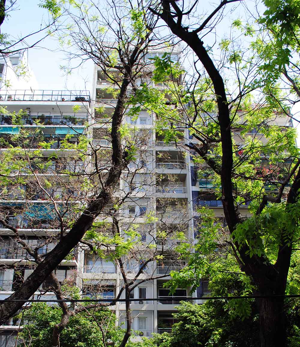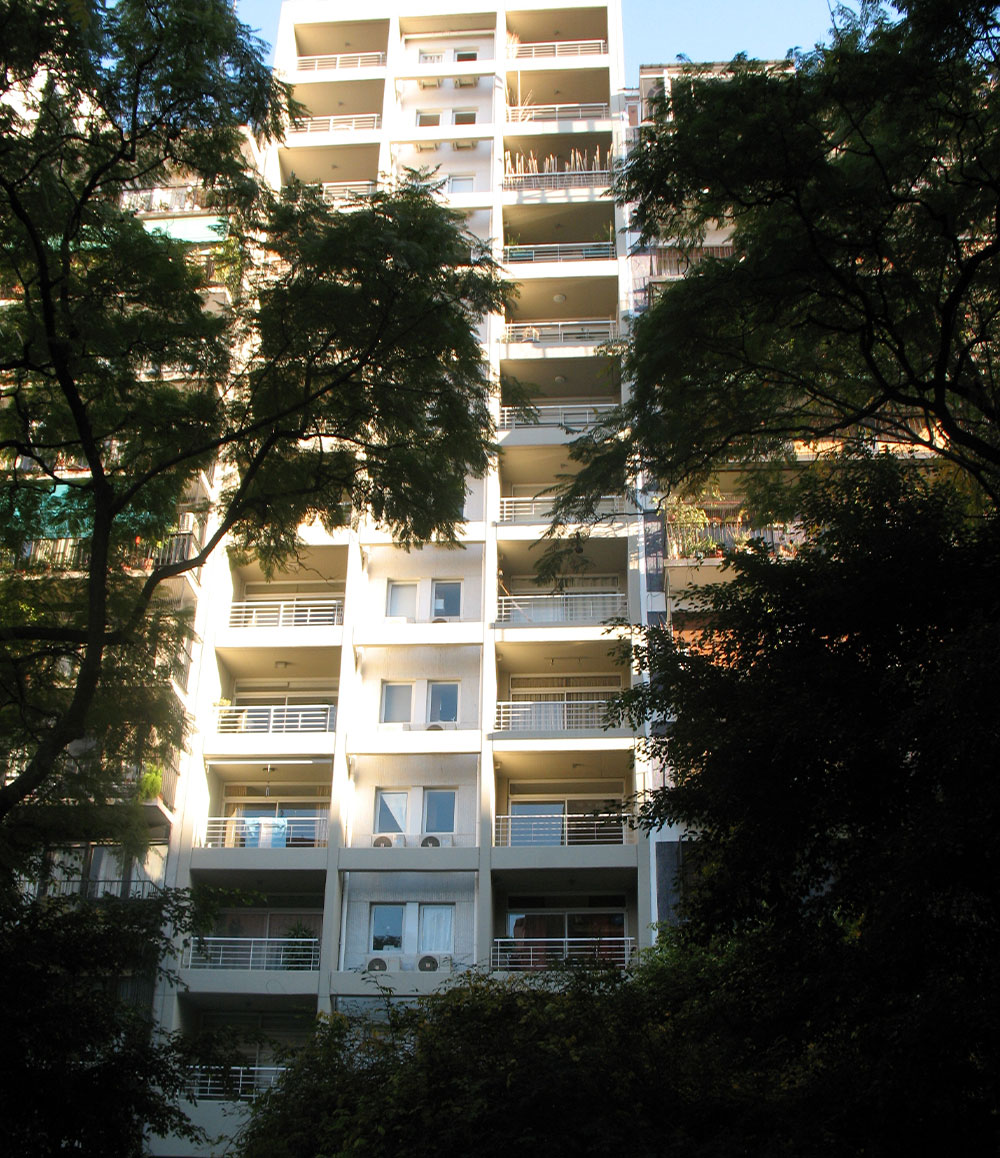 Sencilla y despojada retícula de hormigón que unifica la fachada de un edificio entre medianeras en el medio de la cuadra. El primer edificio de una larga serie de obras que el Estudio realizó en el barrio de Palermo.